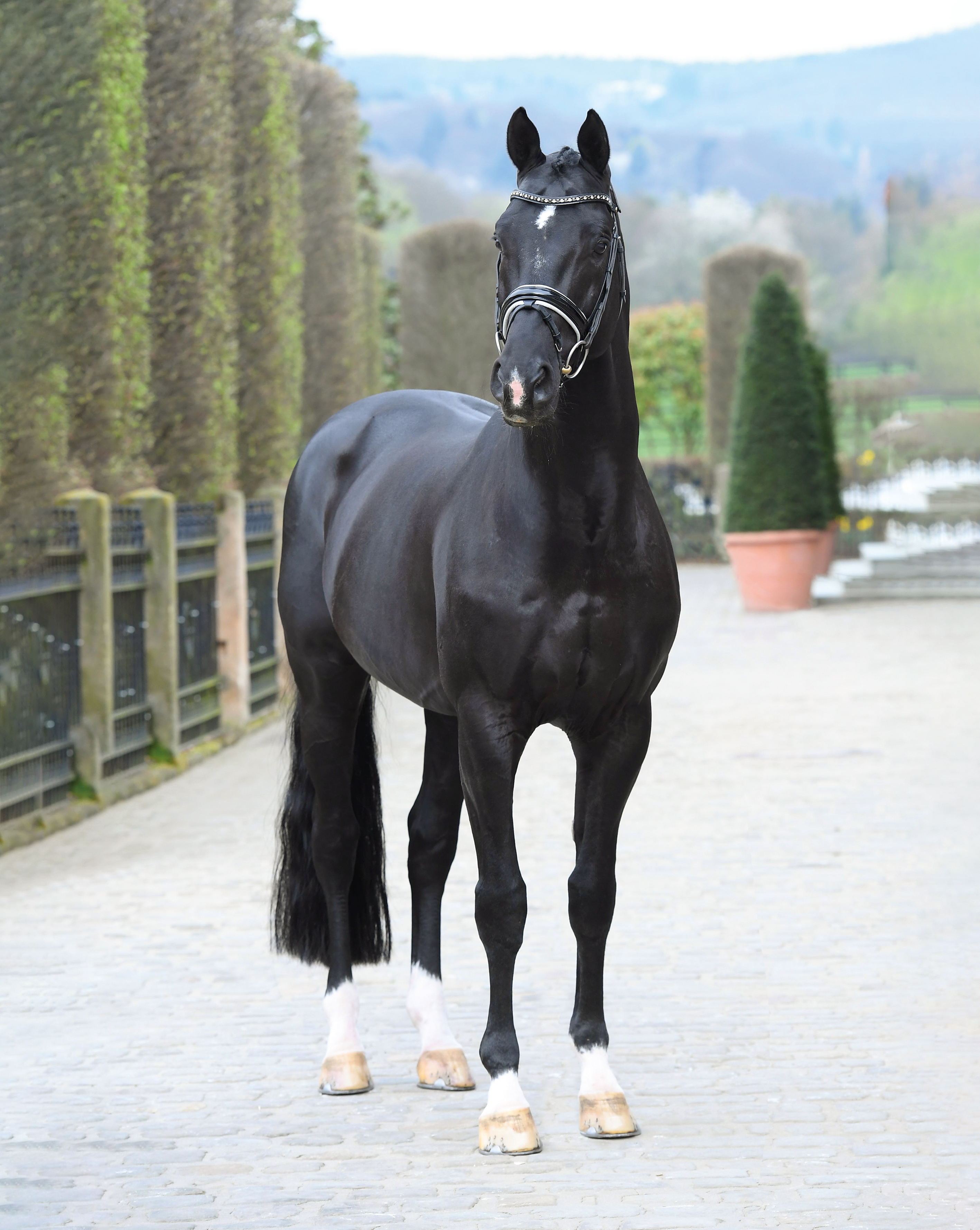 Besagter Olympia-Zehnter, EM-Achter und -Zehnter, Weltcup-Dritter, Burg-Pokal- und Louisdor-Preis-Sieger, Total Hope OLD, führt das Lot der bald 50 gekörten Söhne des Totilas an. Und dann sind da noch die ebenfalls gekörten und international Grand Prix erfolgreichen Birkhof’s Topas FBW/Victoria Max-Theurer, Glock’s Total U.S./Edward Gal/NED, Tabledance/Evelyn Eger, Titolas/Susanne Krohn, Genuine/Marijke van Giesen/NED und Straight Horse Don Tamino/Philine Brunner/SUI sowie der zweifache Dressurpferde-Vize-Weltmeister und EM-Teamfünfte Governor-STR/Adelinde Cornelissen/NED, der Burg-Pokal-Vierte Top Gear OLD/Isabel Freese/NOR, der zweifache Bundeschampionats-Bronzegewinner Total McLaren der mit 370.000 Euro zweitteuerste Hannoveraner Prämienhengst Take That und unser zweiter Reservesieger seiner Kurzprüfung, Total PS.