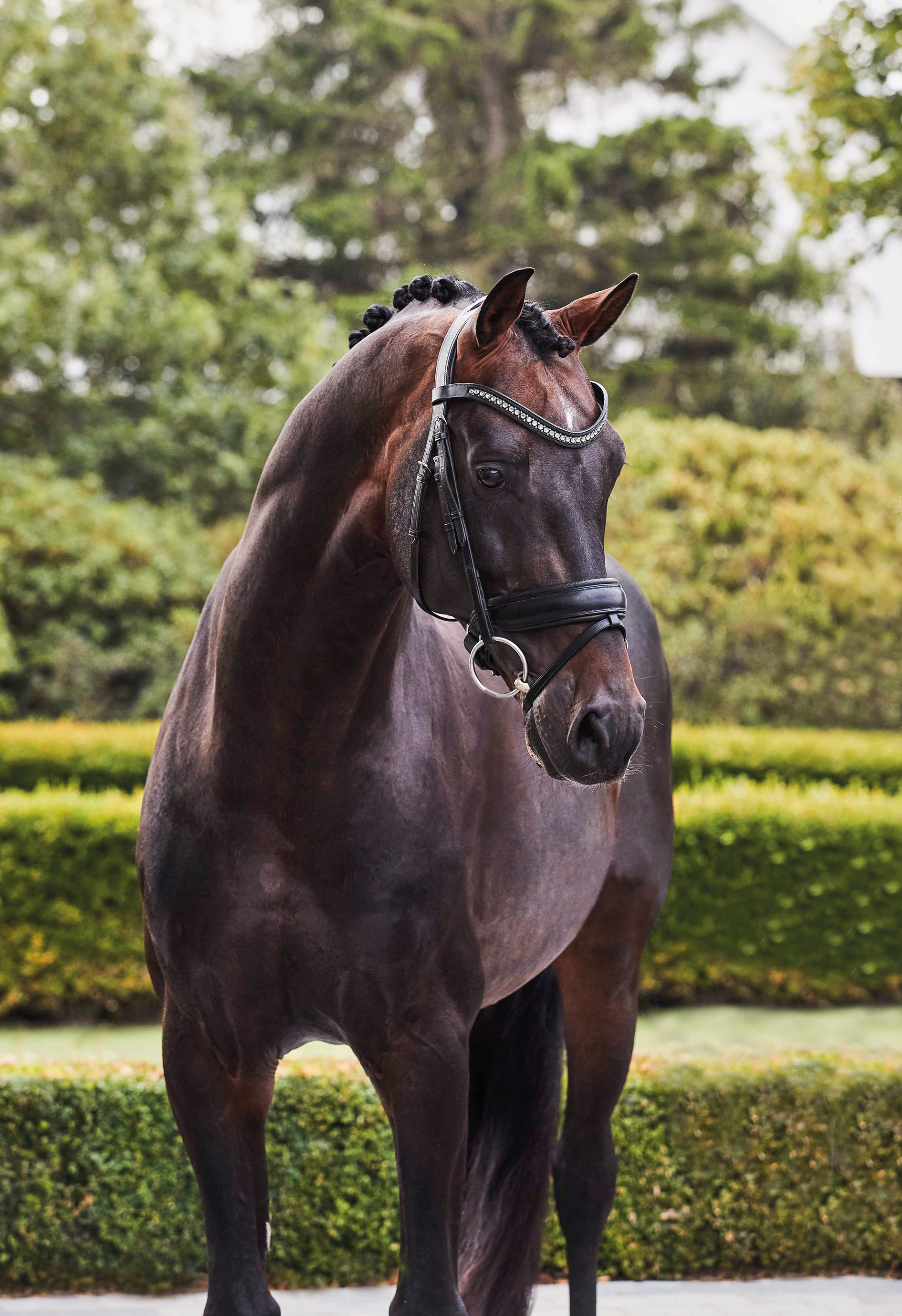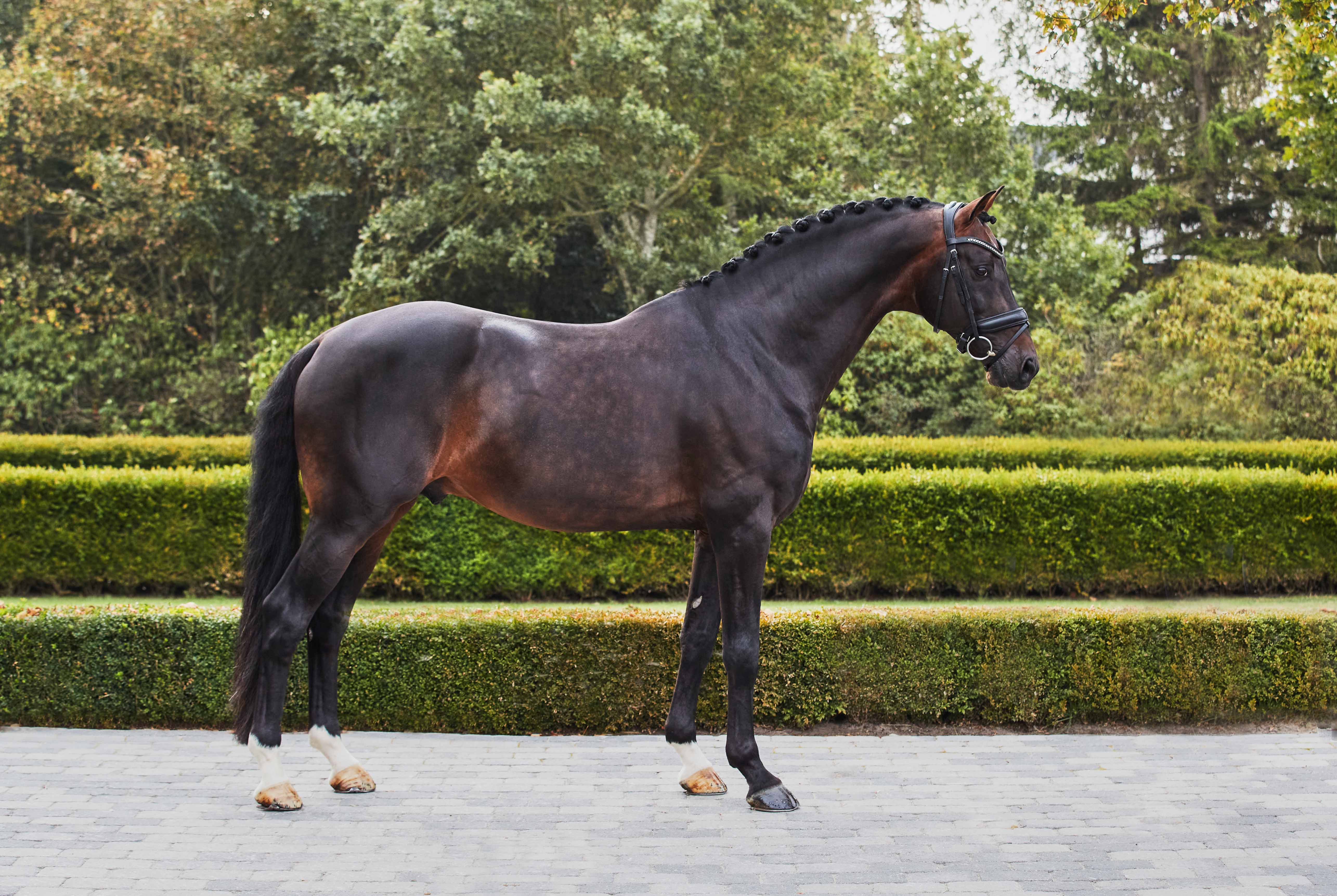 The dam’s sire Ferro won three championship silver medals. With Coby van Baalen/NED, he was part of the Dutch team that was placed second at the 1998 World Equestrian Games in Rome/ITA, at the 1999 European Championships in Arnhem/NED and at the 2000 Olympic Games in Sydney/AUS. Furthermore, he was placed second in the World Cup final in ‘s-Hertogenbosch/NED. He has produced 17 licensed stallions, including Rousseau, Negro, Metall and Rhodium. In the Netherlands, he received the predicate “keur”.
